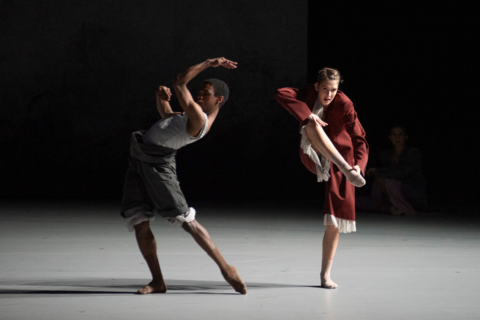 Dans une scénographie de murs de béton tavelés, qui s'écartent peu à peu pour laisser apparaître d'immenses toiles de paysages flamands, magnifiquement éclairés par Tom Visser, les danseurs en costumes aux tons passés, tendance western vintage pour les filles, plus amples pour les garçons, sont visiblement très séduits par les mouvements tournoyants et arqués que leur proposent les deux chorégraphes et de très beaux duos avec des portés et des glissés étonnants et étourdissants. Comme à chaque fois que l'on crée pour eux et sur eux, les jeunes danseurs de l'Opéra se donne à fond et ont répondu à 100 % à la proposition des chorégraphes. Soliste omniprésent, Loup Marcault-Derouard sert de partenaire à plusieurs danseuses, Caroline Osmont, Ida Viikinkoski ou Clémence Gross et ils sont tous formidables dans ce style déjà un peu trop vu, qui ne renouvelle pas vraiment le regard sur la danse. Néanmoins, la façon qu'ont les deux chorégraphes néerlandais de mettre en jeu les corps est intéressante, avec une belle plasticité des danseurs et un message sur l'originalité et l'identité de chacun. Autre danseur à remarquer, Eric Pinto Cata, danseur venu d'Angleterre et ayant rejoint récemment la compagnie, extraordinairement mobile et élastique.