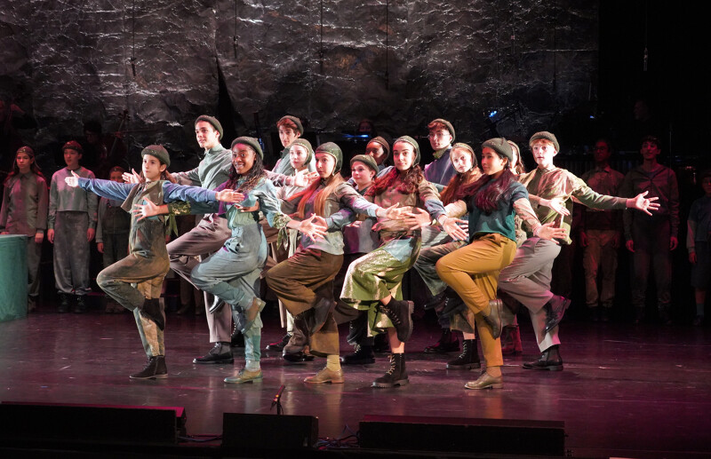 Les 38 jeunes et moins jeunes adolescents sont tour à tour acteurs, choristes, chanteurs solistes, et même danseurs. Avec les costumes, la mise en scène, les lumières, la scénographie bien travaillée, la sonorisation discrète des solistes, on est en plein dans le domaine de la comédie musicale, et c'est touchant et parfois fascinant de voir ces jeunes enchaîner et assurer sans temps morts les différentes scènes. Plusieurs d'entre eux montrent de véritables talents de comédiens, et tous sont à la hauteur de l'événement. Si la lisibilité et l'intelligibilité de l'intrigue se perdent quelque peu dans le foisonnement scénique qui est proposé par Pascal Neyron, surtout pour qui n'a pas en tête de manière assez précise le texte original, quelques bonnes idées apportent une touche originale bienvenue : le rôle muet du garçon qui personnifie le squelette éponyme (lui bien présent sur scène dans sa fonction de témoin et de lanterne), le collège des enseignants et surveillants qui affichent, sur un mode différent de celui du roman mais de manière encore plus éloquente, leurs travers et leurs défauts d'adultes, ou encore l'omniprésence du thème de la guerre qui apporte une touche de gravité tout droit venue du roman.