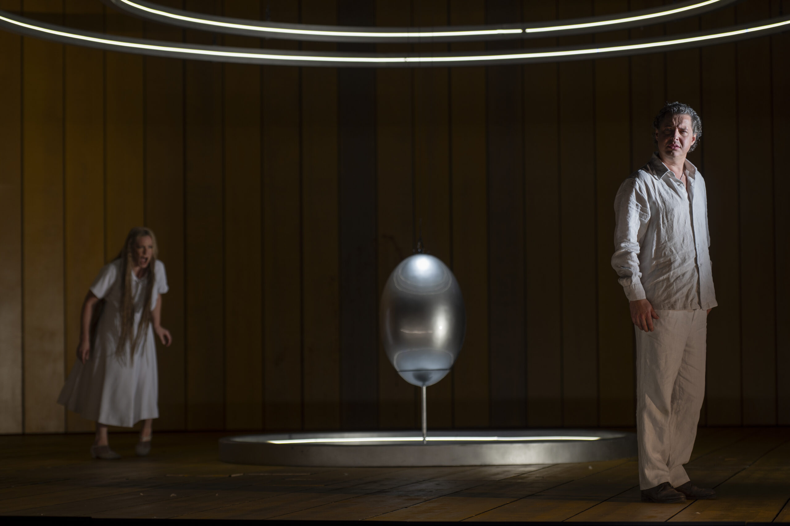 La principale qualité du spectacle réside dans le dispositif symbolique pensé et soigné à l'extrême. Ici, l'abstraction prévaut grâce à l'utilisation habile de la métonymie (où la partie représente le tout : la baignoire remplie d'eau, la fosse creusée sous les planches de la scène) et puis l'ordalie avec le monolithe qui tombe du haut en versant dans la coupe un liquide mercuriel argenté, que Lohengrin répand sur sa poitrine pour en faire son armure. On peut voir aussi dans l'œuf suspendu une référence à celui de Piero della Francesca dans la toile de Brera pour évoquer le mystère de l'origine et le drame de la vie. L'œuf, véritable pivot du récit, passe du noir charbonneux dans son écrin, puis devient argenté pour symboliser le bien, avant de redevenir noir comme le mal, lorsqu'il s'ouvre pour révéler l'opacité totale d'une vérité aveuglante.