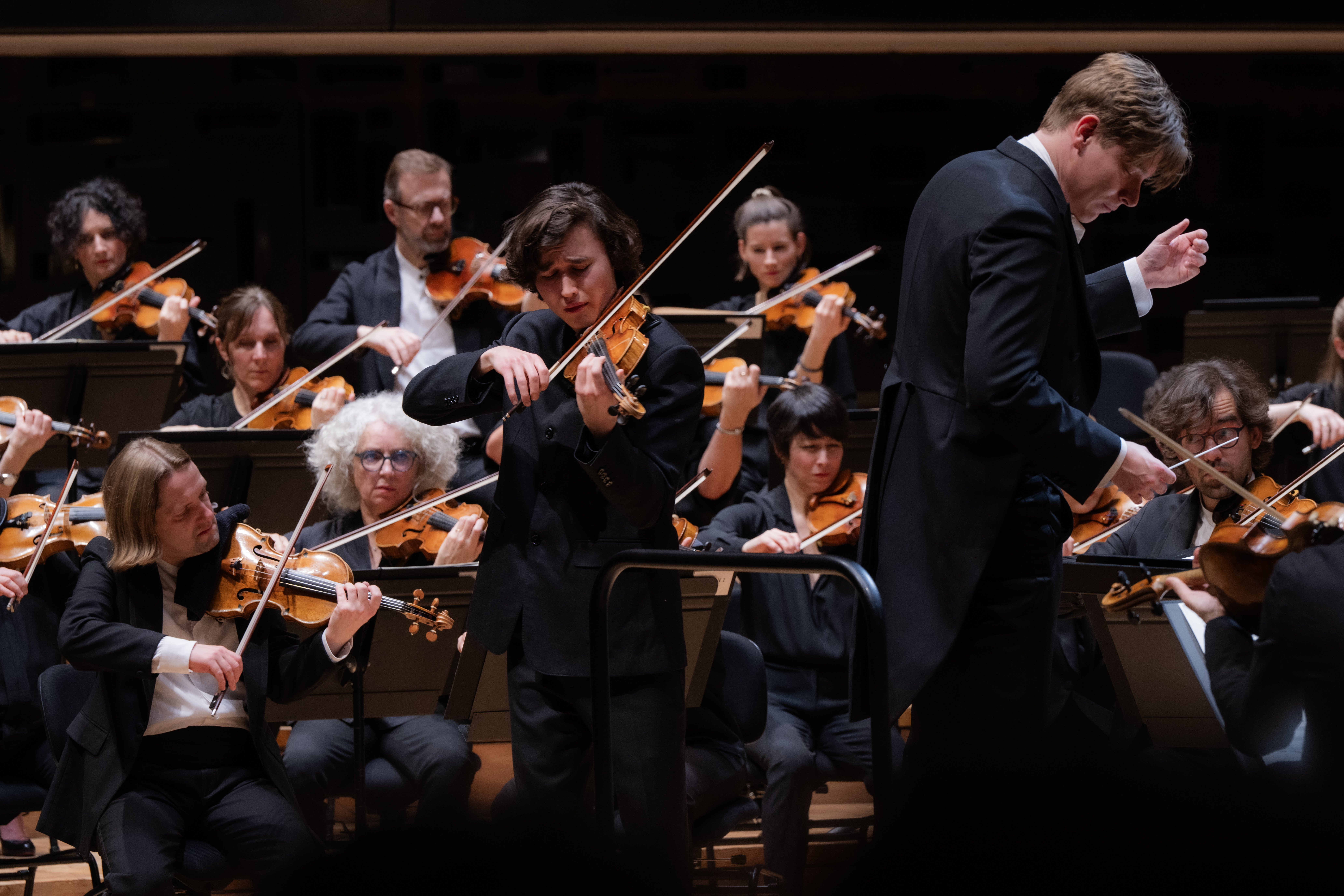 Quant à , s'il fait de grands gestes et se plie parfois en deux pour appuyer les sensations, il devra toutefois faire attention entre les avions de Chicago vers Amsterdam, de bien prendre encore le temps d'analyser les grandes partitions du répertoire, s'il ne veut pas tomber dans les travers entendus lors de ce programme dans le Concerto n°1 de . Certes, le Concerto de Brahms était d'abord prévu, avec Janine Jansen qu'il connait pour avoir notamment dirigé son album Sibelius et Prokofiev en 2024 et en concert régulièrement. Mais cela n'excuse pas un pianissimo quasi inaudible des timbales introductives, pour ensuite jouer tout l'Allegro moderato très fort, sans lui procurer une dynamique qui aurait permis à de sortir de son jeu méditatif dans ce premier mouvement. Au moins, cette approche du violoniste suédois fonctionne dans l'Adagio, où l'archet magnifie son splendide Stradivarius « ex-Sancy » 1713 par de grandes phrases contemplatives. Sans prendre de couleurs au Finale, dont la partie a pourtant été revue par Joachim à la demande de Bruch, le violoniste y reste trop autonome, accompagné d'une manière trop peu énergique, bien que souvent trop forte par l'. En bis, le jeune homme ne prend aucun risque en reprenant la Sarabande de la Partita n°2 de Bach, qu'il a enregistré dès 2018, mais à laquelle il ajoute aussi à présent un esprit très méditatif, d'une lenteur très marquée.