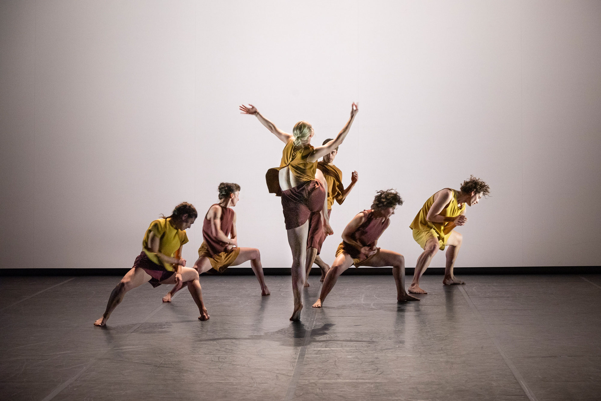 La dernière pièce du programme, JOIN 2, est signée Ioannis Mandafounis. JOIN 2 est née de la rencontre, en novembre 2024, entre les étudiants du Conservatoire et les danseurs et danseuses de la Dresden Frankfurt Dance Company au Théâtre de la Ville, sous la direction du chorégraphe grec. Réadaptée ici pour une version avec dix danseurs, JOIN 2 reprend la trame chorégraphique qui met en avant les notions de groupe, d'identité et de « faire corps » ensemble. L'écriture du chorégraphe est d'emblée plus virtuose dans cette pièce qui se compose autour de brèves séquences interrompues de fondus au noir, parfois brutaux. Dans des éclats de corps et de couleurs, les danseurs se lancent dans des tableaux assez compétitifs, puisant dans l'énergie qui leur reste pour s'interpeller ou courir sur le plateau.