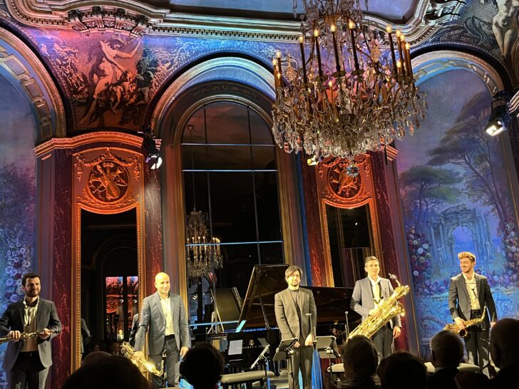 En résidence à la Fondation Singer-Polignac depuis six ans, le quatuor de saxophones (Guillaume Berceau, Étienne Boussard, Florent Louman et Joakim Ciesla, du soprano au baryton) a donné le 22 janvier son dernier concert dans les ors de la Fondation.