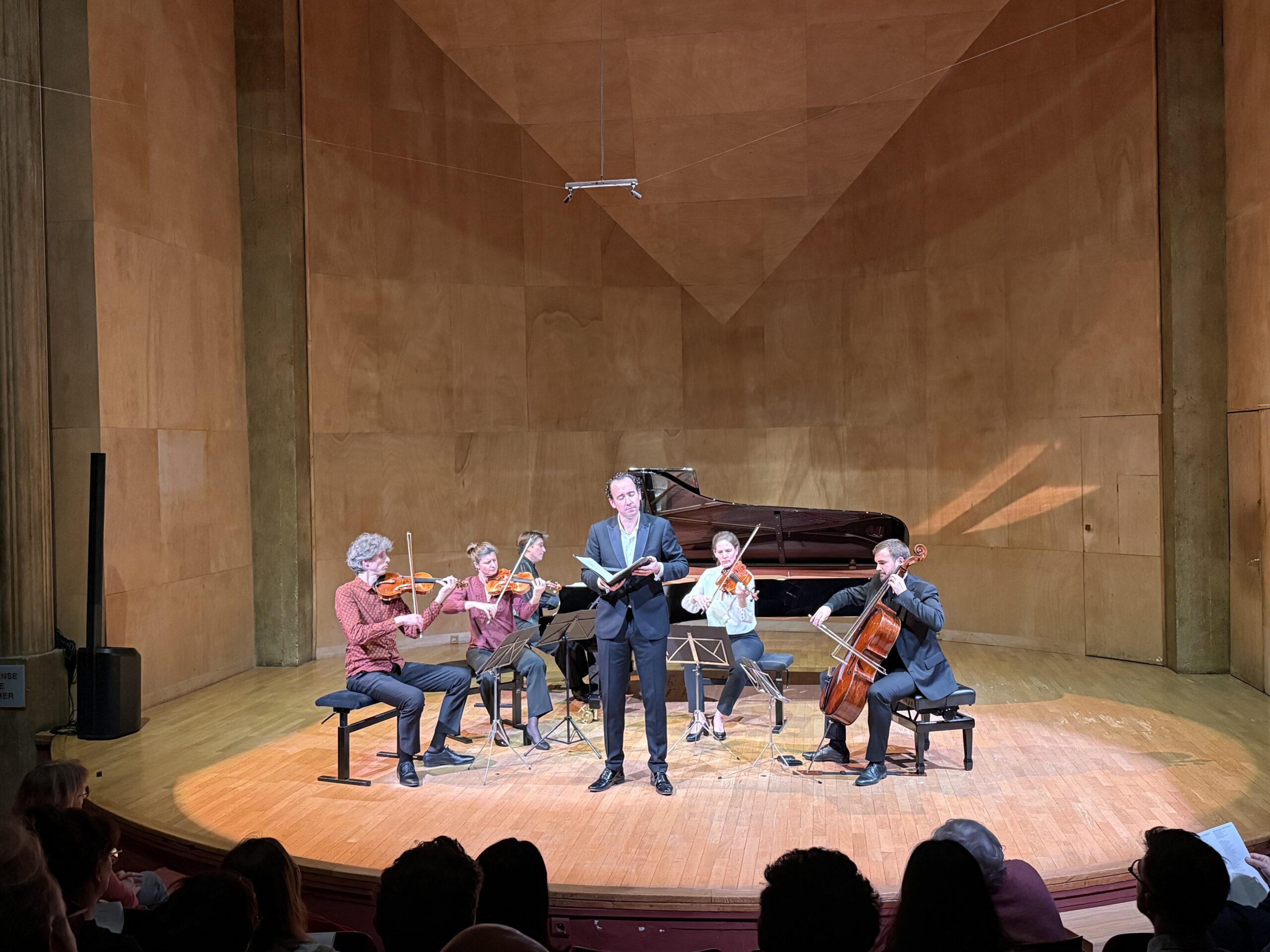 Devant un parterre intimiste, Cyrille Dubois et Anne Le Bozec s'entourent de cinq musiciens pour reprendre au concert des pièces de leur double-album Landscapes sorti le jour même et consacré exclusivement à Ralph Vaughan Williams.