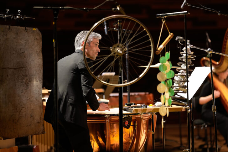Deux sets de percussion bien fournis (dont une roue de bicyclette) se font face de part et d'autre du chef Ilan Volkov et centralisent l'écoute dans Prismes, la nouvelle œuvre de la compositrice pour ensemble orchestral invitant sur scène les musiciens de l'Orchestre Philharmonique de Radio France. L'idée de modeler et de diffracter le son dans l'espace est au cœur du projet à travers l'écriture du timbre et la fusion des familles instrumentales : musique de gestes, couleurs flamboyantes, saturation des cordes, instances bruitées (frottement des peaux, piano préparé) sont autant de propositions sonores un rien foisonnantes et démonstratives qui confinent à l'excès, sans convaincre pleinement.
