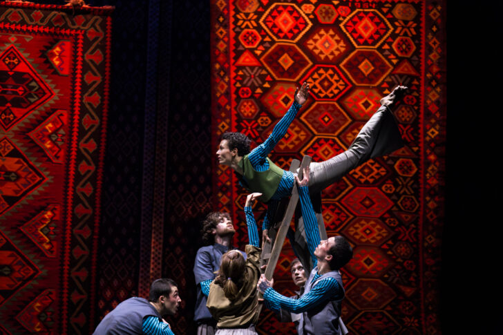 C'est toujours un défi que de se plonger dans une culture que l'on ne connait pas du tout. C'est se mettre en danger, c'est découvrir et imaginer, en prenant des chemins de traverse respectueux. C'est bien ce qu'a réussi Mourad Merzouki (dont on célèbre cette année les 30 ans de sa compagnie Käfig) en s'intéressant à la culture arménienne après avoir séjourné dans ce pays en 2022. Il décide alors, en compagnie de la metteuse en scène Saté Khachatryan, de rendre hommage à un film stupéfiant : La Couleur de la Grenade du réalisateur arménien Sergei Paradjanov (dont on célébrait en 2024 le centenaire de sa naissance). Sorti en 1969, ce film non narratif et rebelle revenait sur la vie du poète arménien Sayat-Nova en plusieurs étapes, qui sont avant tout d'incroyables miniatures colorées, où des personnages de tableaux quasi surréalistes prennent vie, sans faire grand-chose (le film est quasi muet), juste en évoluant dans le champ de la caméra. C'est un story-board vivant, et en cela, la danse de Mourad Merzouki est un parfait support pour revisiter cette œuvre culte.