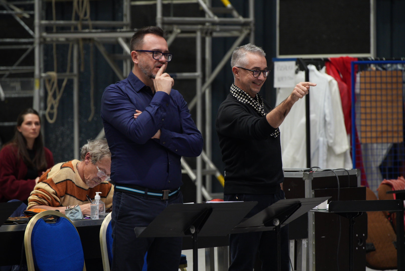 : C'est une façon de révéler l'existence de tous ceux qui travaillent avec nous. Nous avons commencé à travailler aux Etats-Unis pour une petite compagnie à l'époque dirigée par , chef franco-canadien qui avait créé l'Opéra Français de New York. Il s'agissait de louer des théâtres ou des auditoriums pour des productions d'opéras rares. Un système qui nous a plu et que nous avons souhaité importer en Europe, lorsqu'en 2012, nous avons décidé de créer le lab. Le lab est un collectif, auquel tel ou tel théâtre peut passer un contrat de production. De la scénographie à la lumière, de la vidéo au graphisme, nous sommes responsables de toute l'équipe artistique engagée. Nous travaillons toujours avec les mêmes personnes, l'idée étant que la plupart des membres du lab vive, comme nous, à Bordeaux. Même si c'est moins le cas aujourd'hui, nous n'avions pas envie de ces équipes à géométrie variable en fonction des projets, avec par exemple un scénographe imposé. On avait vraiment envie de développer un même outil artistique ensemble. Partant de là, et n'ayant jamais souhaité, ni Jean-Philippe ni moi, faire ce métier seul, on n'a jamais chercher à séparer qui faisait quoi. Nous signons à deux, et en même temps, aussi bien la mise en scène que la scénographie et les costumes. Et même dans la presse nous tenons à ce que n'apparaisse en photos que notre duo ou le collectif au complet.