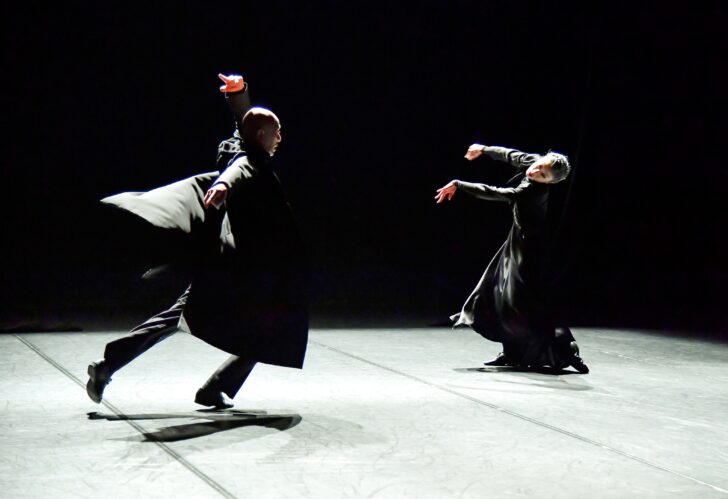 Les silhouettes semblent empruntées aux traits d'un dessin de Schiele, les corps sont tout autant fluidité que saccades, habillés de noir, d'une longue robe ample pour Rihoko Sato et d'un long manteau pour Teshigawara, image de la dépouille déposée au sol lors d'une émouvante danse de l'adieu. Le spectacle est accompagné du Tristan et Isolde de Wagner, donnant à la partition une coloration romantique qui vient tout autant souligner la mort à venir que sublimer les instants solos d'un amour qui s'efface, peu à peu, vers le tragique que tout Éros charrie. Les danseurs se cherchent au milieu de la folie et de la tendresse, dans une danse marquée par des déliés délicats et qui réunit dans le mouvement un amour qui, s'il ne pût être possible, existe ici dans une danse du lien où les âmes se rencontrent.
