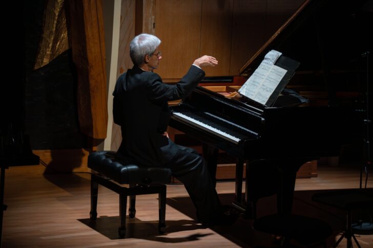 Le concert s'achève en rythme et dans la joie par le Baile de vida, pour cor, trompette et piano préparé (2025) d'Anaïs-Nour Benlachhab. L'énergie est ici au cœur d'un système dense jouant, d'une part, sur l'alternance entre passages populaires (la salsa dura) et plus abstraits ou contemporains ; d'autre part, sur le déplacement permanent du son entre les instruments solistes qui finissent toujours par fusionner. Il est réjouissant de voir Dimitri Vassilakis s'agiter en tous sens armé de baguettes, qu'il frappe sur et dans le piano. La compositrice ne s'y trompe pas, qui parle de la musique comme battant, respirant et entraînant. Nous non plus.