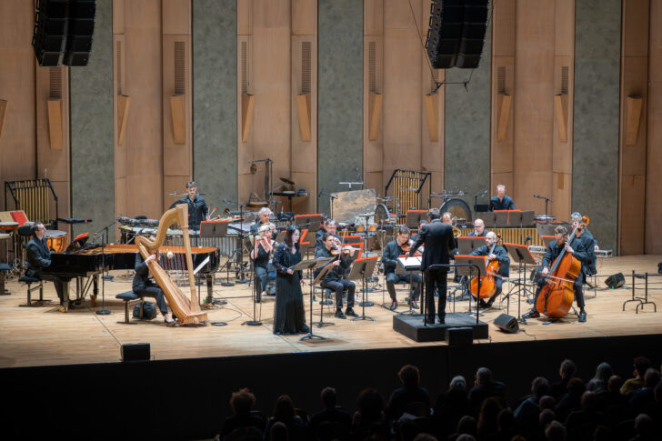 Après cette mise en bouche à la saveur puissante, retour vers le passé avec Etymo, pour soprano, orchestre de chambre et électronique, composée en 1994, d'après des textes de Charles Baudelaire. Dans le fil (plus ou moins droit) de la démarche de Luciano Berio dont Luca Francesconi a suivi l'enseignement, l'œuvre interroge non seulement les rapports de la parole et de la musique, à partir de la phrase « Dîtes, qu'avez-vous vu? » du poème Le Voyage, génératrice d'une construction formelle à partir de ses proportions internes, mais aussi les liens entre les approches phonétique, sémantique et poétique du mot, né d'un souffle et atomisé en particules dans le premier volet, ensuite parlé, laissant progressivement apparaître son sens, puis dans le troisième volet, au cœur d'un tissu orchestral riche et complexe, devenant poétique, devenant chant en dialogue avec les instruments, dont la longue ligne se déploie dans un registre vocal d'une grande étendue. Effets de démultiplication, intime combinaison de l'électronique et de l'instrumental donnent à l'œuvre une profondeur de champ, une aura harmonique où la voix semble trouver davantage qu'un écrin, son origine peut-être, ou son miroir. Exaltée juste avant la coda, son expression devient théâtrale, culminant dans une vocifération, mais c'est parlée qu'elle conclut l'œuvre avec « aujourd'hui 26 mars 2026, j'ai senti passer sur moi le vent de l'aile de l'imbécilité », extrait des Journaux intimes du poète. Une œuvre qui en rien datée demeure captivante, sublimée par les renversantes vocalises Yeree Suh.