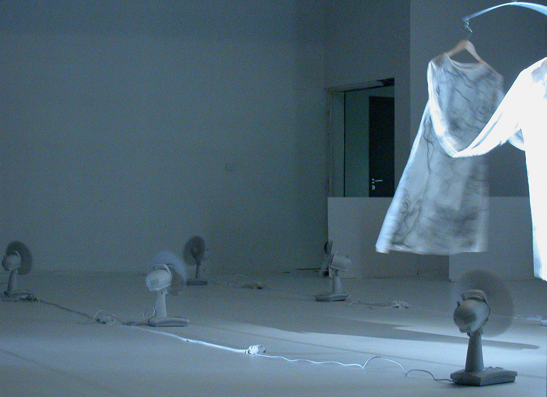 RM : 100% polyester est le titre de votre premier geste chorégraphique en 1999 avec la scénographe et créatrice lumière . C'était radical : faire de la danse sans corps visible.