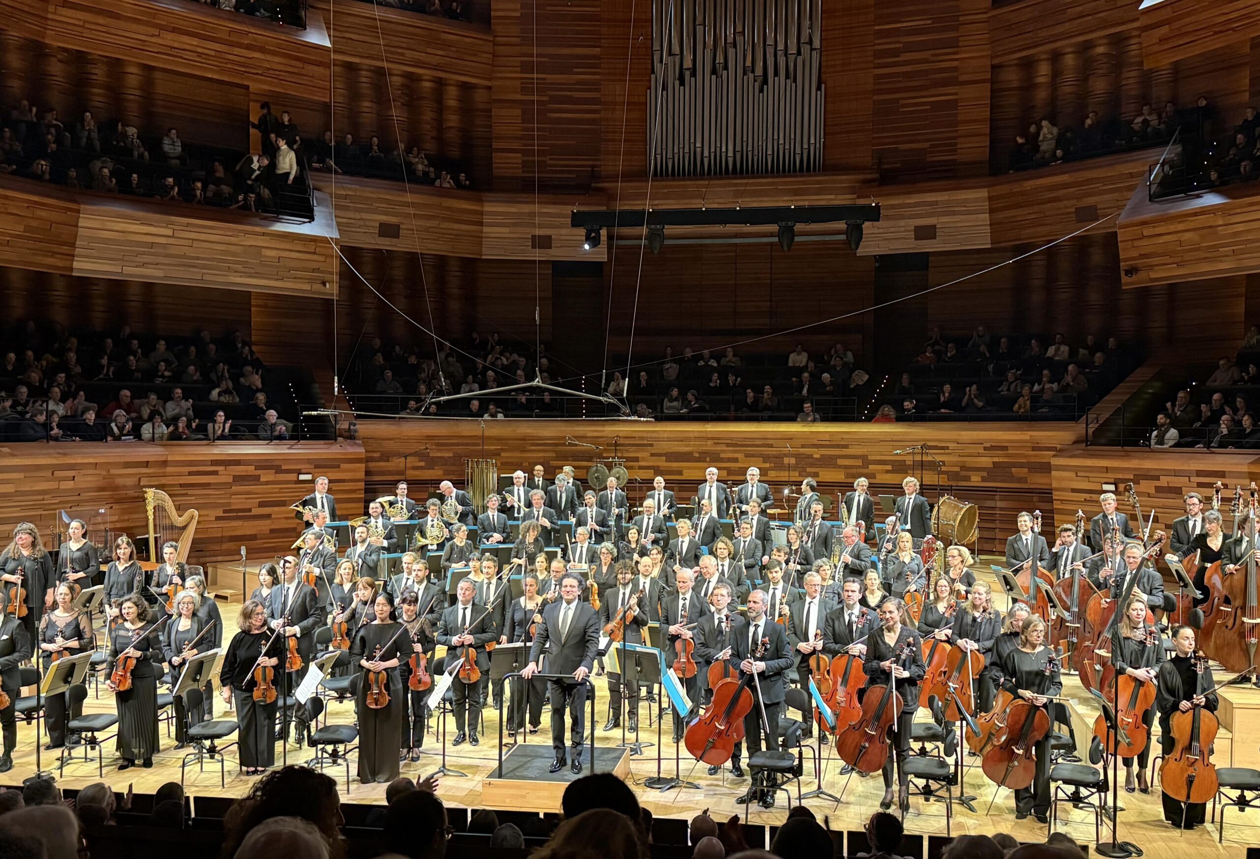 Dernier ouvrage du programme, L'Oiseau de feu de Stravinski est redonné dans la suite de 1919. Plus pratique car elle limite les bois par deux au lieu de quatre et les cors par quatre, celle-ci s'adapte comme nous l'avons entendu en mars à des ensembles de la taille de l'Orchestre Symphonique de Bretagne, avec une quarantaine de cordes. Mais pour l'interpréter à l'Auditorium, seuls quelques vents quittent la scène après la pièce de Dusapin, laissant les cordes à soixante, au risque de parfois contraindre les équilibres. Là encore, propose des gestes exaltés pour dynamiser cette partition. Mais si cela fonctionne dans un morceau comme L'Oiseau de feu et sa danse, ou grâce à des attaques de cordes d'une superbe franchise dans la Danse infernale de Katcheï, on a souvent l'impression d'un oiseau à cinq pattes. Clinquante sans le style américain, parfois brusque sans le style boulézien et souvent joliment colorée grâce à l'orchestre, sans tout à fait jouer sur le style français, l'interprétation semble se chercher dans une vision qui ne ressort vraiment que dans les derniers instants. Retenons donc plutôt les raretés de cette soirée, à commencer par le concerto.