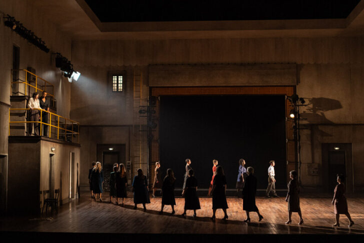 L'audacieux essai de Bobbi Jene Smith et Or Schraiber serait transformé, n'était la déception d'un Acte III dénervé, très en-deçà des deux premiers, interminable avec ses solistes conviés à chanter à la rampe et ses danseurs et danseuses, pourtant éblouissants de grâce au I ou longuement mêlés au chœur pour la très bauschienne marche dans les pas de Gandhi au II (peut-être le sommet de la soirée), mais semblant cette fois chercher leur pas autant qu'une inspiration évanouie dans un décor unique qui n'aura finalement pas livré grand-chose, bien que son toit ouvrant eût laissé espérer quelque épiphanie poétique. On ne retiendra de cette conclusion en decrescendo que la métamorphose du Palais Garnier en cathédrale sonore par ses mesures introductives chantées des hauteurs, rideau fermé, sous la lumière du plafond de Chagall. Cette déception finale (rater une fin est ce qui peut arriver de pire à un spectacle) ne manquera pas de donner du grain à moudre aux contempteurs de Philip Glass (il paraît qu'il en existe encore) ni de raviver chez les autres le souvenir prégnant de la récente production Childs/Guiol/de Lavenère à Nice, autrement inspirée sur la longueur.