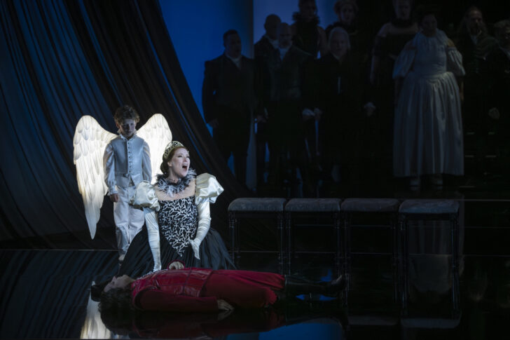 Liège. Opéra Royal de Wallonie. 12-IV-2026. Gaetano Donizetti (1797-1848) : Lucrezia Borgia, opéra seria en deux actes et un prologue, sur un livret de Felice Romani, d’après le drame Lucrèce Borgia de Victor Hugo. Mise en scène : Jean-Louis Grinda. Décors et lumières : Laurent Castaingt. Costumes : Françoise Raybaud. Vidéo : Arnaud Pottier. Avec : Jessica Pratt (Lucrezia Borgia), Dmitry Korchak (Gennaro), Marko Mimica (Alfonso d’Este), Julie Boulianne (Maffio Orsini), Luca Dall’Amico (Don Apostolo Gazella), Roberto Covatta (Jeppo Liverotto), Marco Miglietta (Oloferno Vitellozzo), Lorenzo Martelli (Rustighello), Francesco Leone (Gubetta), William Corro (Astolfo), Rocco Cavalluzzi (Ascanio Petrucci). Solistes et Chœurs de l’Opéra Royal de Wallonie, préparés par Denis Segond. Orchestre de l’Opéra Royal de Wallonie, Giampaolo Bisanti, direction musicale générale.