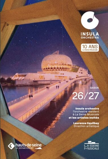 Inaugurée en avril 2017 par Insula Orchestra, La Seine musicale fêtera la saison prochaine ses 10 ans. L'ensemble y est toujours en résidence, sous la direction de sa cheffe Laurence Equilbey, y menant une activité à la fois artistique et pédagogique avec son académie d'insertion professionnelle Insula Camerata (créée en 2025) pour les jeunes musiciens jouant sur instruments d'époque et aussi une offre à destination des 18-28 ans, Insulab, avec des après-concerts instructifs ou récréatifs.