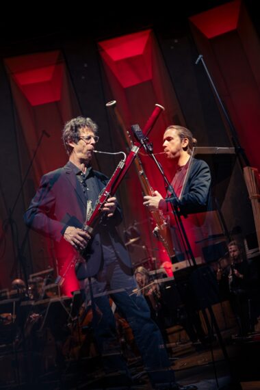Les deux percussionnistes reprennent leur place dans les rangs de l'ensemble, débutant Sirènes de Philippe Schœller par le grondement de leurs deux grosses caisses, une amorce que le compositeur dit avoir écrit sans connaître ni l'ordre ni le contenu du concert ! Gémellité toujours dans cette pièce donnée en création qui invite deux bassons solistes (magnifiques Paul Riveaux et Marceau Lefèvre) et nous plonge dans l'univers du mythe où l'imaginaire de Schœller aime vagabonder. La texture orchestrale est chatoyante, colorée et mouvante, qui évoque plus d'une fois les mixtures du grand orgue, accueillant les moirures de quatre steel drums aux distorsions jouissives. Se détachent de l'ensemble les sonorités exogènes des deux bassons que Schœller fait « chanter » en voix de tête : échos multiples d'une mélancolie pénétrante qui ménage des instants d'une rare beauté.