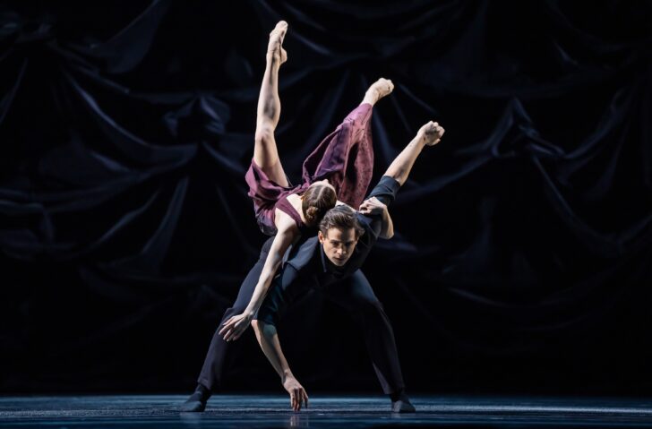 Il y a beaucoup de points communs entre les trois pièces de ce programme du Ballet de Bavière. Le premier est le bas niveau des choix musicaux des trois chorégraphes, très loin de l'importance accordée à la musique par Laurent Hilaire d'après ses propres dires – il est vrai que Andrew Skeels, le chorégraphe de la deuxième pièce, cite le blockbuster Dune de Denis Villeneuve comme source d'inspiration, et notamment sa musique signée Hans Zimmer ; même la soupe sentimentale de Karl Jenkins choisie par Nacho Duato paraît du Mozart en comparaison. Le second est le refus de la lumière, particulièrement net chez Skeels où on ne voit rien, un peu moins chez Duato qui joue le clair-obscur, ou chez Sharon Eyal où quelques lumens de plus n'auraient pas nui. Le troisième, et c'est celui qui a présidé à sa programmation, c'est le thème de la transe, de l'ivresse, des différentes formes de dépossession de soi et de perte de contrôle.