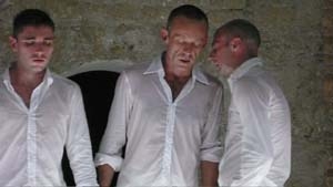 Festival d'Automne Un trio masculin et italien fougueux, énergique et bavard auquel répondent, par images interposées, trois figures féminines, de l’enfance à la maturité. Trois joyeux garçons en costume sombre, chemise blanche ...