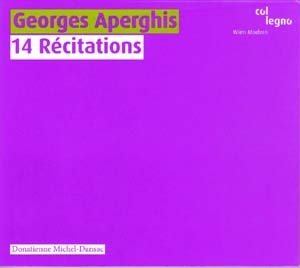 Les 14 Récitations de Georges Aperghis, dont la composition débuta en 1978, sont inspirées par la technique de la Klangfarbenmelodie d’Anton Webern, où le thème musical est fragmenté à l’extrême ...