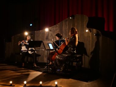 Musiciennes de « 20° dans le noir », un collectif tourné vers la musique d’aujourd’hui, Shao-Wei Chou (flûte), Lola Malique (violoncelle) et Fanny Vicens (accordéon) sont en résidence au Pavillon ...