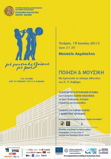 European Cultural Centre of Delphi & Shostakovich’ International Association present : WITH EXQUISITE MUSIC, VOICES 150th BIRTH ANNIVERSARY OF C.P. CAVAFY (1863-1933) Wednesday 19th June 2013 ACROPOLIS MUSEUM, Open-Air Space - ATHENS (Greece) Concert inspired by the poem « ...